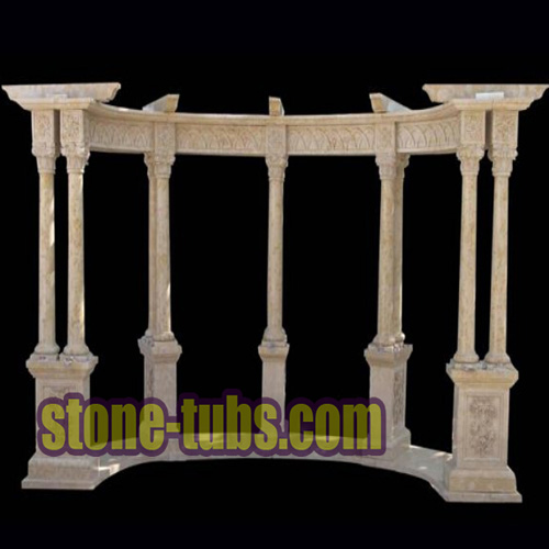 If you are looking for a big marble gazebo, this one is just for you. It is completely hand-carved from marble blocks and comes with a cast iron top dome and matching marble benches. It creates a beautiful and functional garden layout, where you can relax and rejoice in the presence of nature. Standing on over 15 pillars, this design provides plenty of space for large parties.