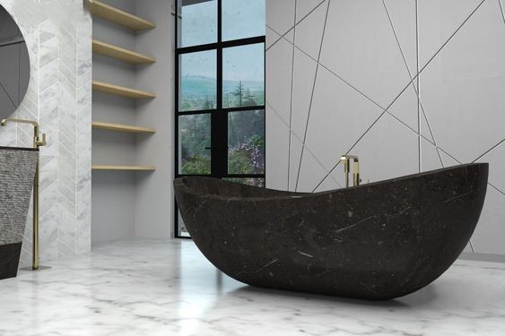 Discover opulent stone bath tubs – from grand freestanding tubs to dramatic black stone creations. Elevate your bathroom with timeless luxury and functionality.