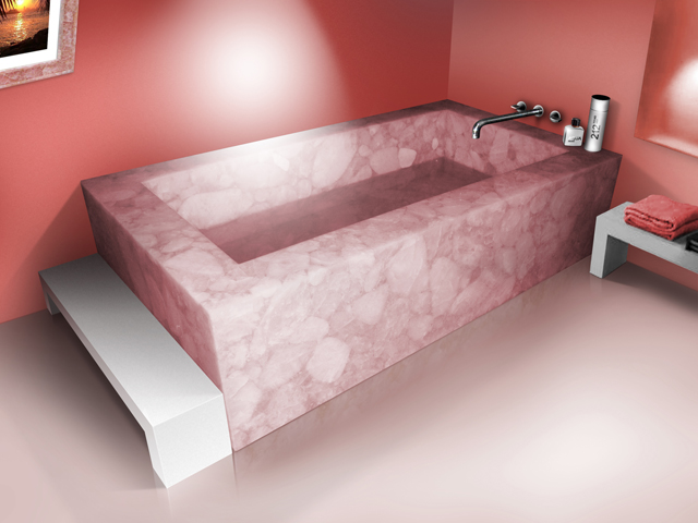 Taking inspiration from a stunning block of pink marble, this stunning onyx tub in irregular design is perfect for a bathroom with an antique look. Besides its smooth, comfy interior, the tub also includes a small area to keep your bathroom accessories near you.