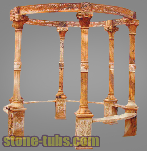-Stone Sculptured Gazebo -100% hand carved Stone Sculptured Gazebo -With the cast iron top dome and benches -Creates a beautiful and functional garden by this backyard gazebo -More backyard gazebo designs please contact New Home Stone