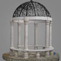 If you are looking for a big marble gazebo, this one is just for you. It is completely hand-carved from marble blocks and comes with a cast iron top dome and matching marble benches. It creates a beautiful and functional garden layout, where you can relax and rejoice in the presence of nature. Standing on over 15 pillars, this design provides plenty of space for large parties.