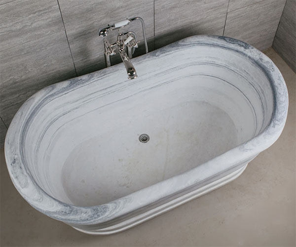 Whether you have a sprawling bathroom or a modest one, you can make a powerful statement into the interior decor with a stylish marble bathtub.