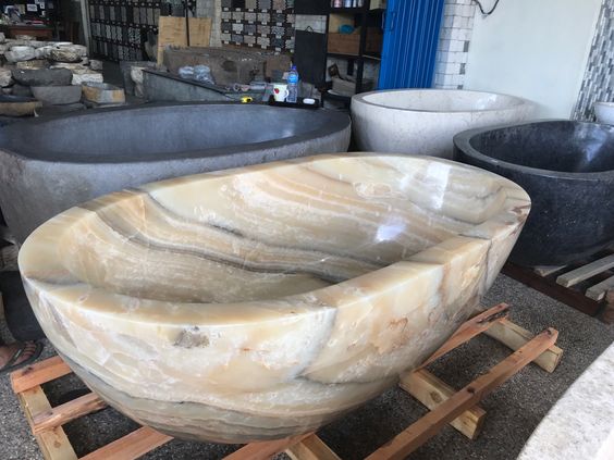 “Indulge in opulence with freestanding stone bathtubs, a symphony of elegance and craftsmanship. Transform your bath into a tactile delight.”